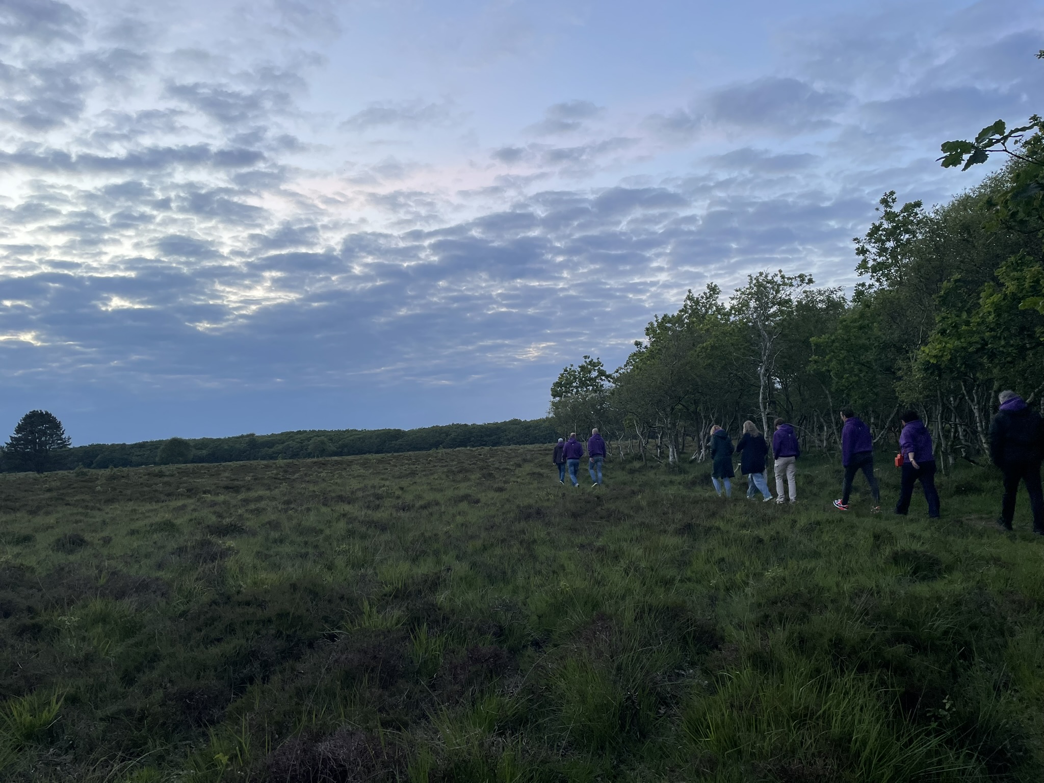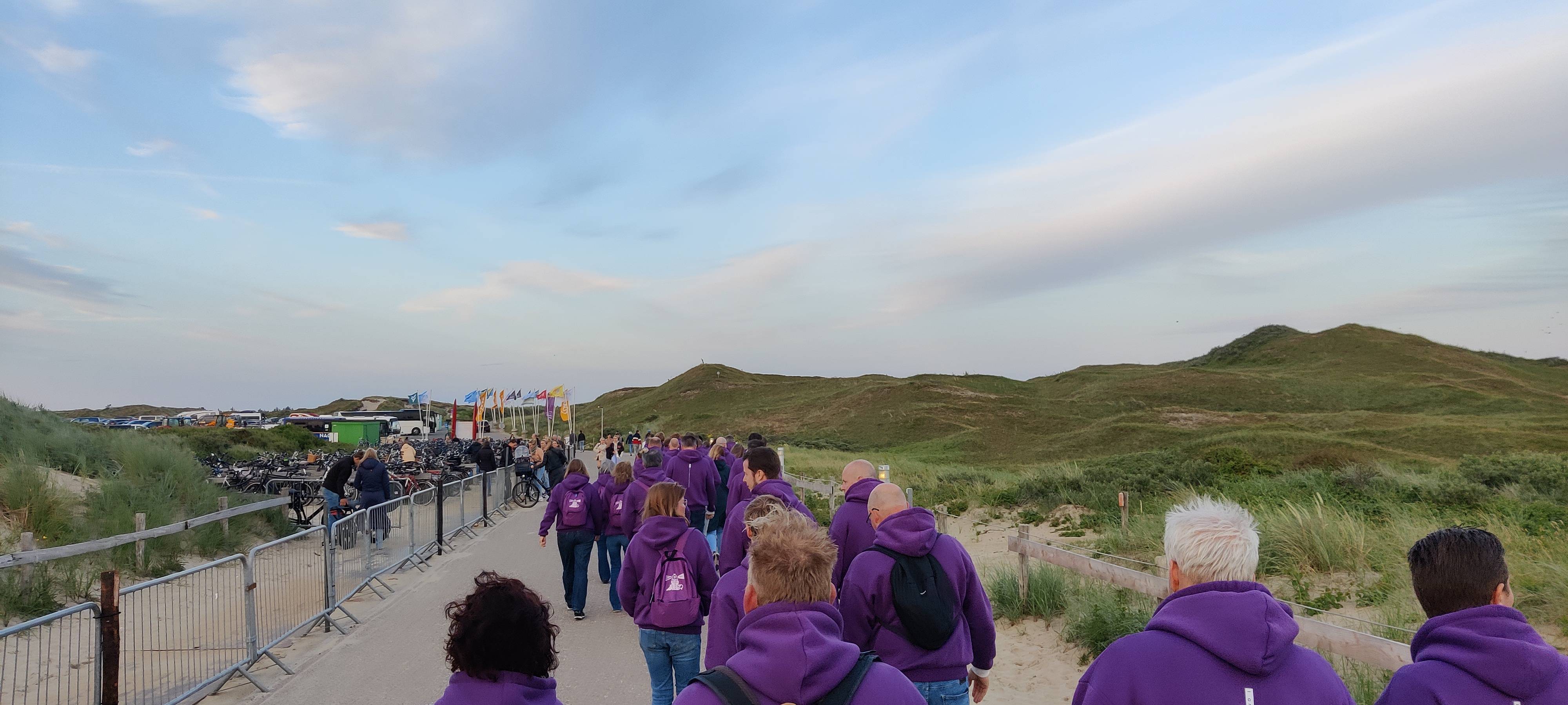 Na het diner gingen de paarse FIQAS sweaters aan en werden we vanuit een bus in groepjes her en der op Texel gedropt. “We wachten op jullie in de kroeg!” Het survivaltrauma van de Ardennen onderdrukkend, vertrokken de groepjes het bos, de weide of de weg in/op. Gelukkig viel het alles mee. Het leek in de verste verte niet op een survival en werd een hele fijne avondwandeling. De wandeling eindigde met een welverdiende borrel in de kroeg.