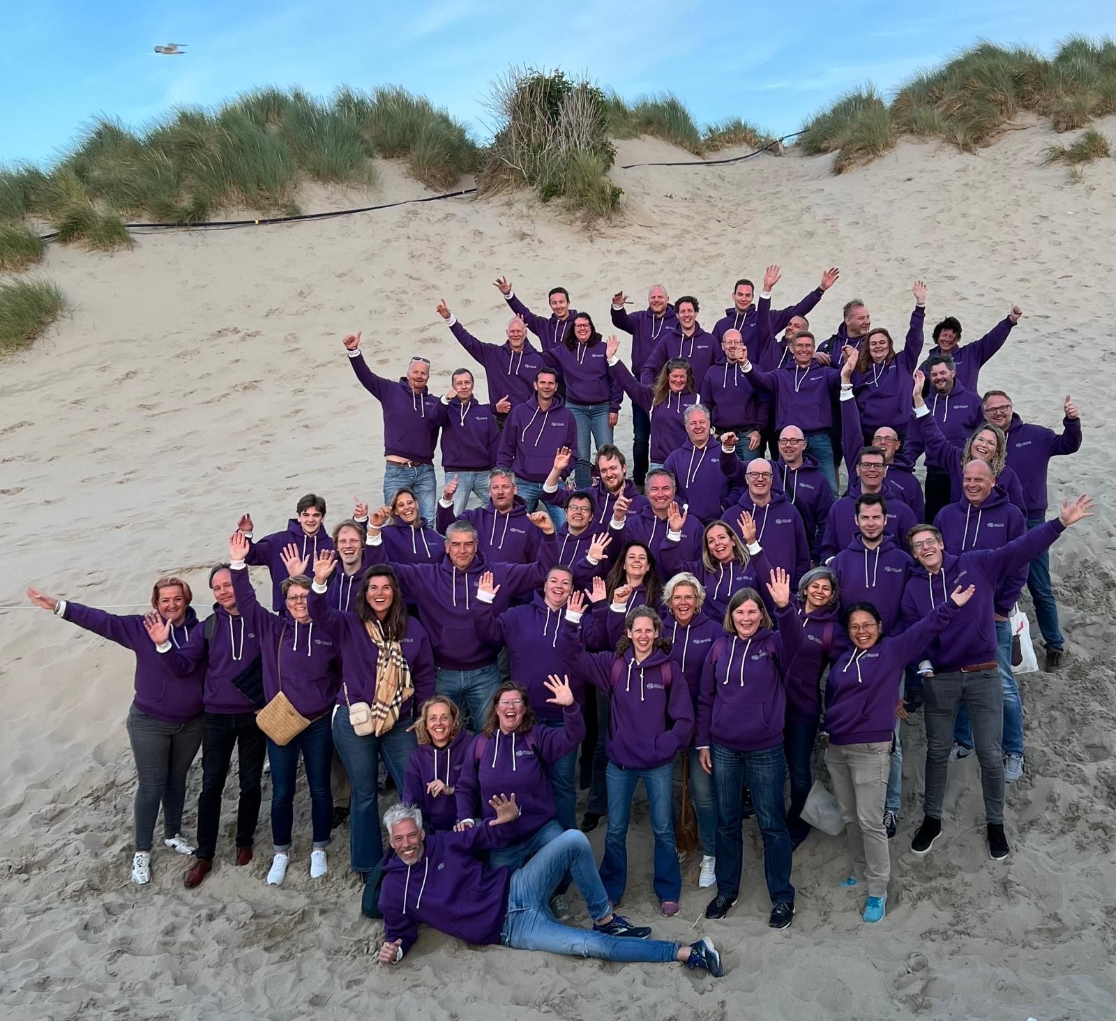 In de middag was het tijd voor wat meer sensatie op het water. We gingen richting de zeehonden in een snelle RIB boot en genoten van de prachtige dieren en mooie verhalen van de schipper. Heelhuids, en met coupe ‘windkracht 12’ en hier en daar een verbrand voorhoofdje, kwamen we weer terug aan wal. In de avond genoten we van een heerlijk BBQ-buffet aan het strand in de avondzon. Hier trakteerden we – namens al het personeel – Rob en Annemiek op een speciaal jubileumportret van alle FIQASsers. (Inmiddels schittert deze aan de muur boven de trap in het FIQAS pand.)